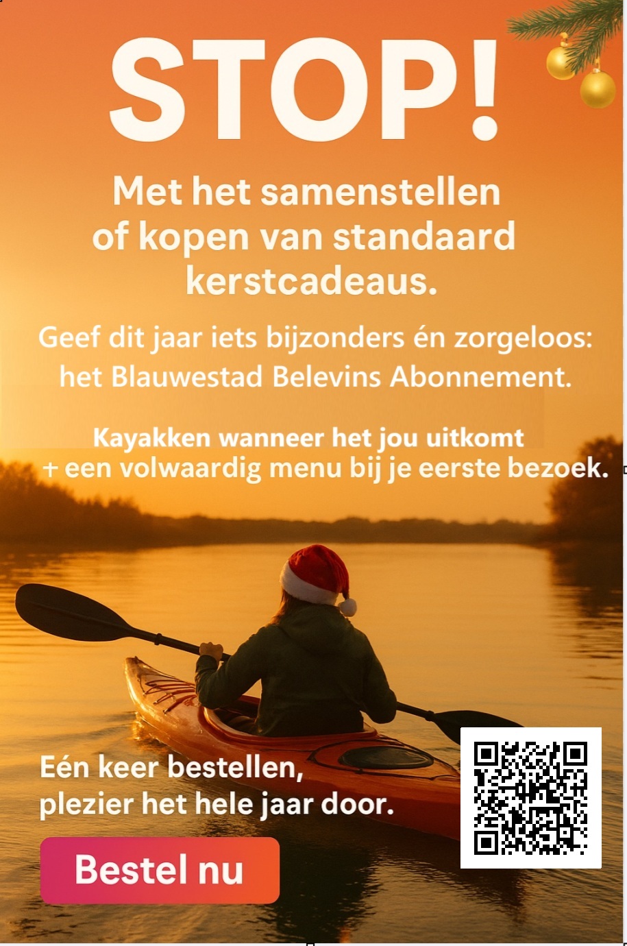 Het meest duurzame cadeau van Blauwestad! Geef een ervaring die het hele jaar plezier brengt. Kayakken wanneer het jou uitkomt en genieten van een smakelijk welkom – dat is het Blauwestad Belevenis Abonnement.