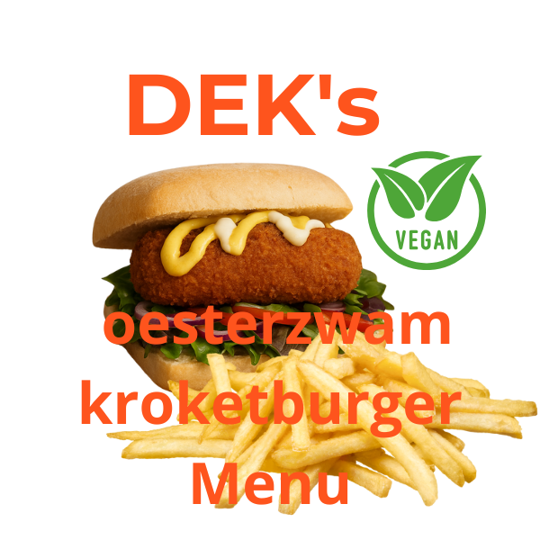 Artikelnummer: DEK's vegan kroketburger Menu met broodje + patat + saus naar keuze Categorieën: , ,